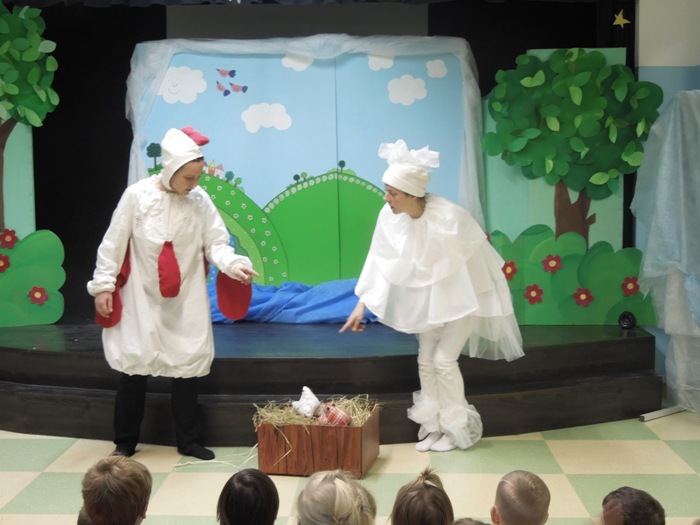 Così hanno fatto alcuni educatori della Scuola materna L’Aquilone che si sono messi in gioco, recitando davanti alla platea dei loro bambini e delle prime cinque classi della Scuola elementare Dante Alighieri. Dopo aver elaborato e semplificato una storia della Nuvola Olga, personaggio molto noto di Nicoletta Costa, hanno rappresentato una delle sue avventure ad un pubblico stupito e sorridente che ha seguito con attenzione le battute recitate da persone che, seppur travestite con gli abiti di scena, hanno riconosciuto con facilità.